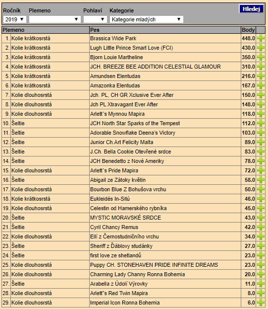 Loňská výstavní sezona (2019) byla pro naši chovatelskou stanici velmi úspěšná a nyní po sečtení všech bodů z výstav v ČR i v zahraničí se můžeme těšit tímto výsledkem: v klubové soutěži KCHCS Výstavní pes roku 2019 získala Brassica Wide Park 1. místo v kategorii mladých fen! Zároveň měla také nejvíce bodů ze všech fen svého plemene a ze všech juniorů nehledě na pohlaví ani plemeno (krátkosrstá kolie, dlouhosrstá kolie, šeltie).