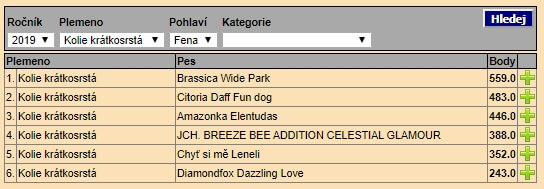 Výsledky – všechny feny krátkosrsté kolie: